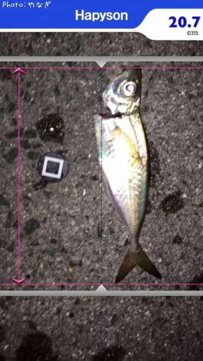 で、結果は21cmのアジ。と抜き上げポチャのアジ。指2本くらいの太刀魚が3匹。