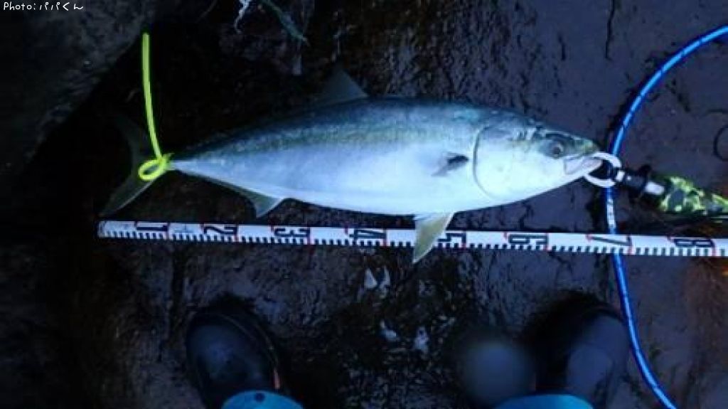 アメニモマケズ先週と同じ柏島で明るくなった7時過ぎにやっと本日初ヒットは68cmのハマチでした!直後お隣さんはひと回り大きい75cnその後がヤズをポツポツ!
