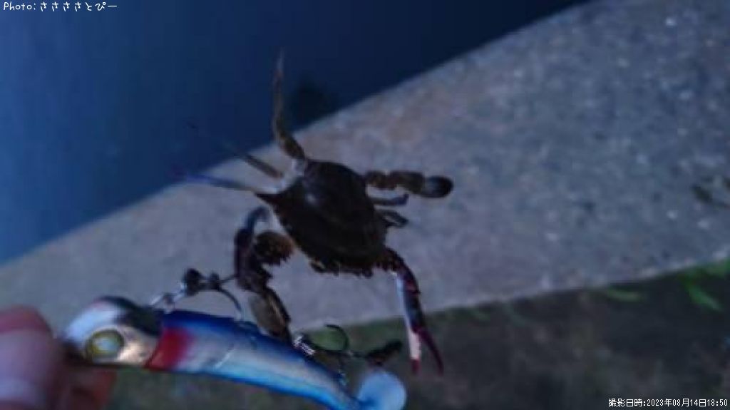 2023年8月14日17時55分に釣れたクロダイ&ワタリガニのポイント千葉県内房(関東地方)ささささとぴーさん釣果詳細情報です。この情報を詳しく見ることで、ルアー、ロッド、タックル(仕掛け)など効率よく自分なりの爆釣を初心者でも狙うことができます。