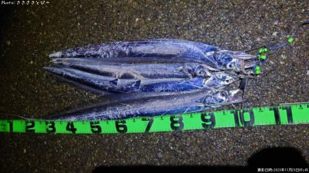 2023年11月23日3時14分に釣れた太刀魚のポイント千葉県内房(関東地方)ささささとぴーさん釣果詳細情報です。この情報を詳しく見ることで、ルアー、ロッド、タックル(仕掛け)など効率よく自分なりの爆釣を初心者でも狙うことができます。