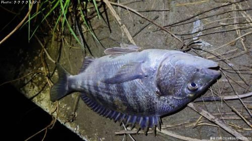 2024年4月4日19時53分に釣れたクロダイのポイント千葉県内房(関東地方)ささささとぴーさん釣果詳細情報です。この情報を詳しく見ることで、ルアー、ロッド、タックル(仕掛け)など効率よく自分なりの爆釣を初心者でも狙うことができます。