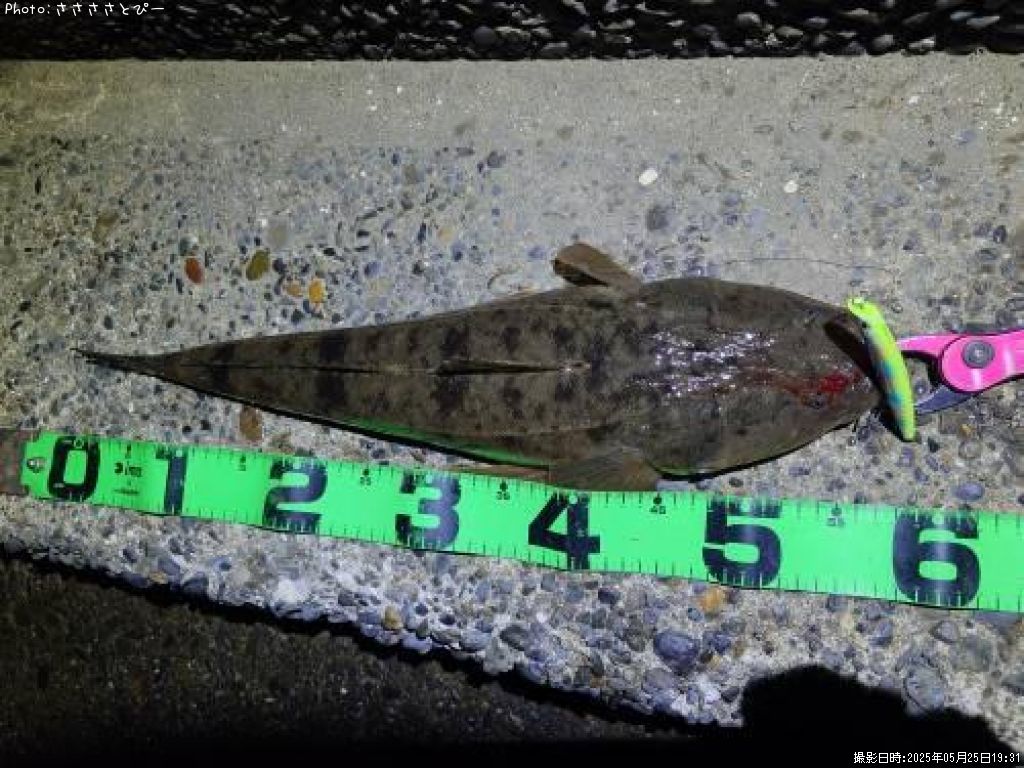 2025年5月25日19時37分に釣れたマゴチ&シーバスのポイント千葉県内房(関東地方)ささささとぴーさん釣果詳細情報です。この情報を詳しく見ることで、ルアー、ロッド、タックル(仕掛け)など効率よく自分なりの爆釣を初心者でも狙うことができます。