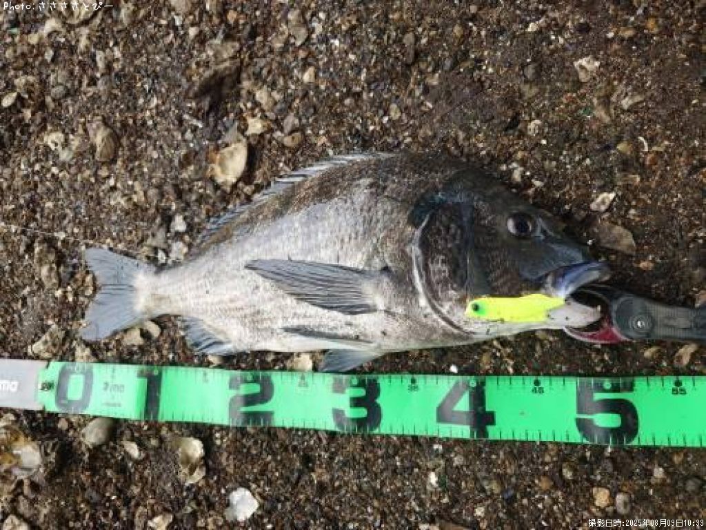 2025年8月9日10時33分に釣れたクロダイのポイント千葉県内房(関東地方)ささささとぴーさん釣果詳細情報です。この情報を詳しく見ることで、ルアー、ロッド、タックル(仕掛け)など効率よく自分なりの爆釣を初心者でも狙うことができます。