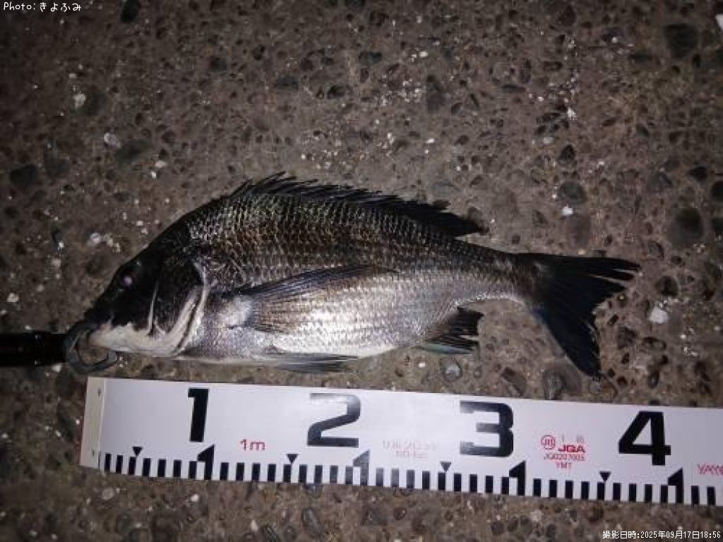 2025年9月17日18時56分に釣れたクロダイのポイント千葉県養老川(関東地方)きよふみさん釣果詳細情報です。この情報を詳しく見ることで、ルアー、ロッド、タックル(仕掛け)など効率よく自分なりの爆釣を初心者でも狙うことができます。