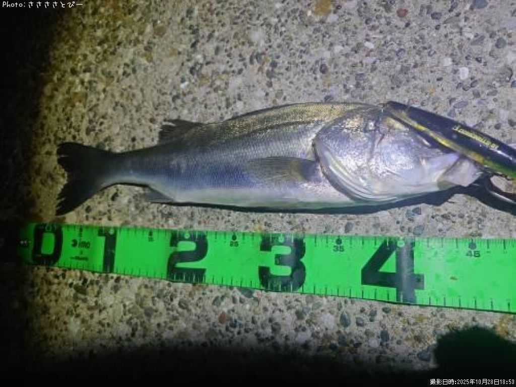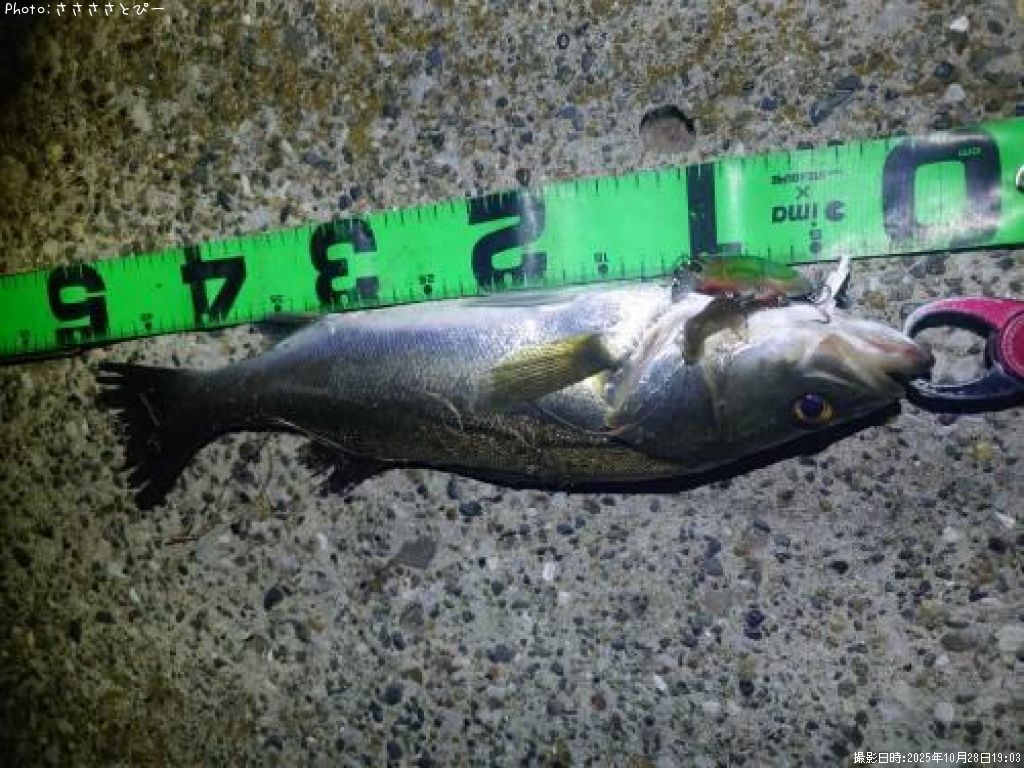 2025年10月28日18時53分に釣れたシーバスのポイント千葉県内房(関東地方)ささささとぴーさん釣果詳細情報です。この情報を詳しく見ることで、ルアー、ロッド、タックル(仕掛け)など効率よく自分なりの爆釣を初心者でも狙うことができます。