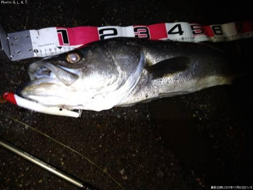 2025年11月2日21時15分に釣れたシーバスのポイント静岡県沼津市(東海地方)G.L.A.T.さん釣果詳細情報です。この情報を詳しく見ることで、ルアー、ロッド、タックル(仕掛け)など効率よく自分なりの爆釣を初心者でも狙うことができます。