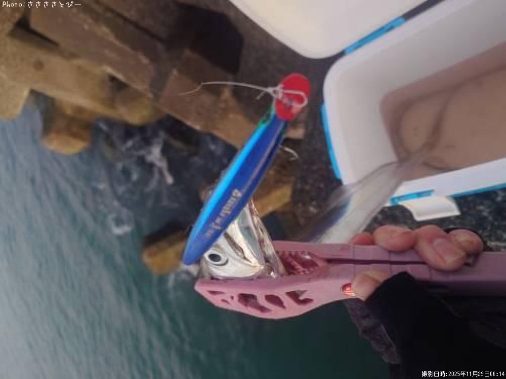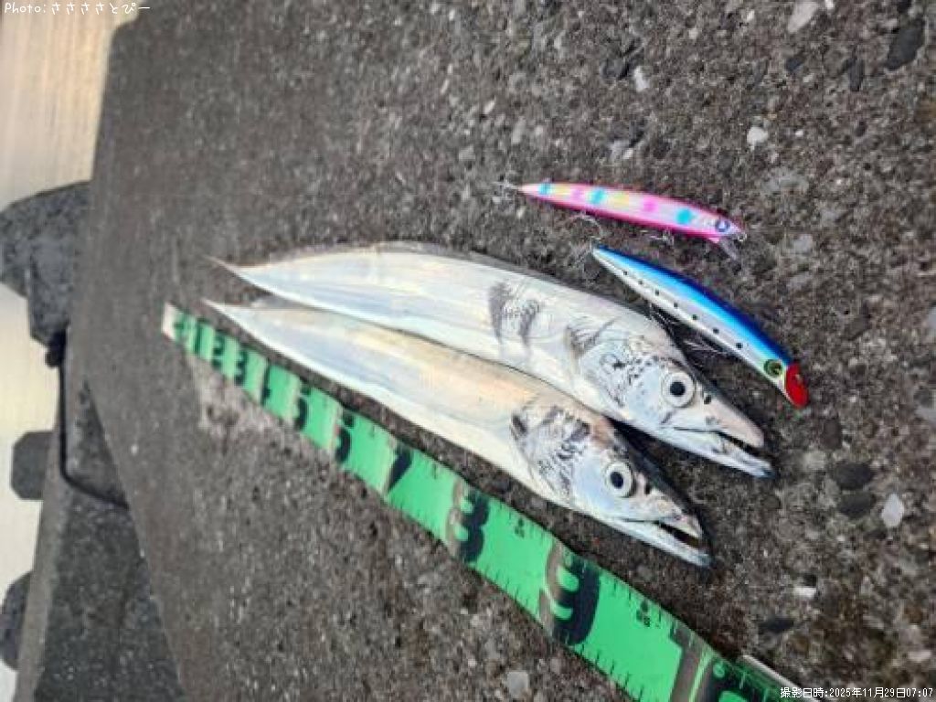 2025年11月29日6時14分に釣れた太刀魚のポイント千葉県内房(関東地方)ささささとぴーさん釣果詳細情報です。この情報を詳しく見ることで、ルアー、ロッド、タックル(仕掛け)など効率よく自分なりの爆釣を初心者でも狙うことができます。