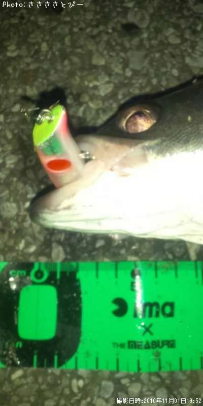 2010年11月1日19時52分に釣れたシーバスのポイント千葉県袖ケ浦市(関東地方)ささささとぴーさん釣果詳細情報です。この情報を詳しく見ることで、ルアー、ロッド、タックル(仕掛け)など効率よく自分なりの爆釣を初心者でも狙うことができます。
