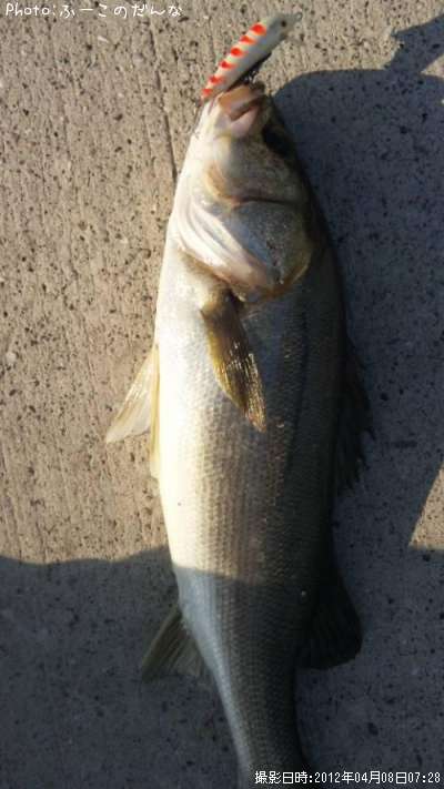 2012年4月8日7時28分に釣れたシーバスのポイント千葉県船橋市(関東地方)ふーこのだんなさん釣果詳細情報です。この情報を詳しく見ることで、ルアー、ロッド、タックル(仕掛け)など効率よく自分なりの爆釣を初心者でも狙うことができます。