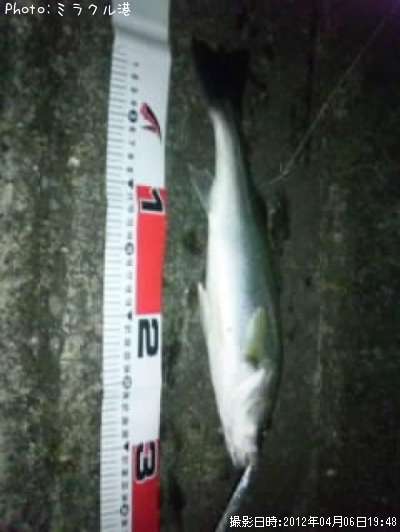 2012年4月6日19時25分に釣れたシーバスのポイント静岡県浜松市西区(東海地方)ミラクル港さん釣果詳細情報です。この情報を詳しく見ることで、ルアー、ロッド、タックル(仕掛け)など効率よく自分なりの爆釣を初心者でも狙うことができます。