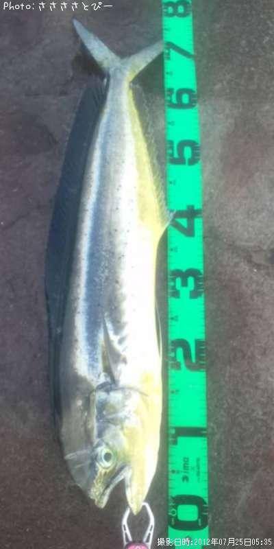 2012年7月25日4時16分に釣れたシイラ&カマスのポイント千葉県イナダの通り道(関東地方)ささささとぴーさん釣果詳細情報です。この情報を詳しく見ることで、ルアー、ロッド、タックル(仕掛け)など効率よく自分なりの爆釣を初心者でも狙うことができます。