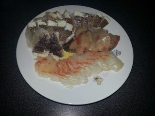 今日はあら汁・ソイ、真鯛、イナダの刺身です