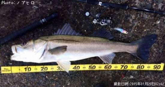 2015年1月20日5時31分に釣れたシーバスのポイント千葉県内房(関東地方)ノブヒロさん釣果詳細情報です。この情報を詳しく見ることで、ルアー、ロッド、タックル(仕掛け)など効率よく自分なりの爆釣を初心者でも狙うことができます。