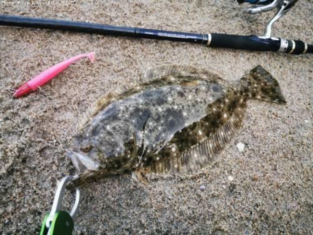 ヒラメ釣果サイズ[チームおかっぱりのプレジ釣果]