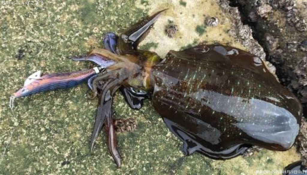 2025年9月23日13時59分に釣れたアオリイカのポイント山口県東部(中国地方)へっぽこまるさん釣果詳細情報です。この情報を詳しく見ることで、ルアー、ロッド、タックル(仕掛け)など効率よく自分なりの爆釣を初心者でも狙うことができます。