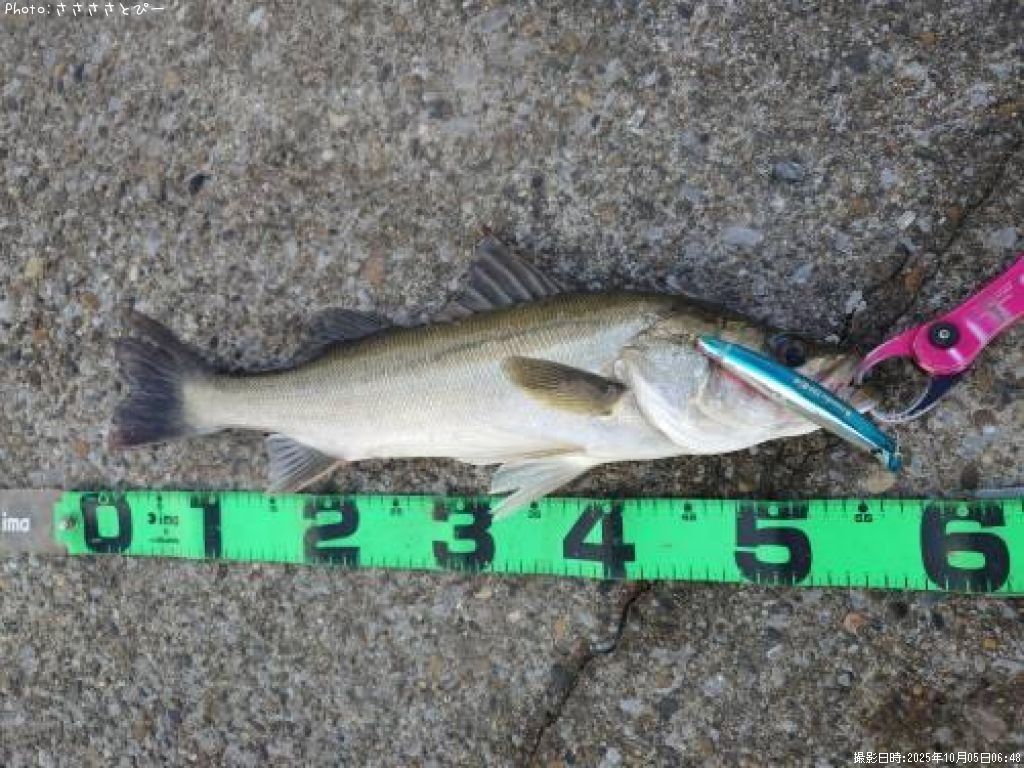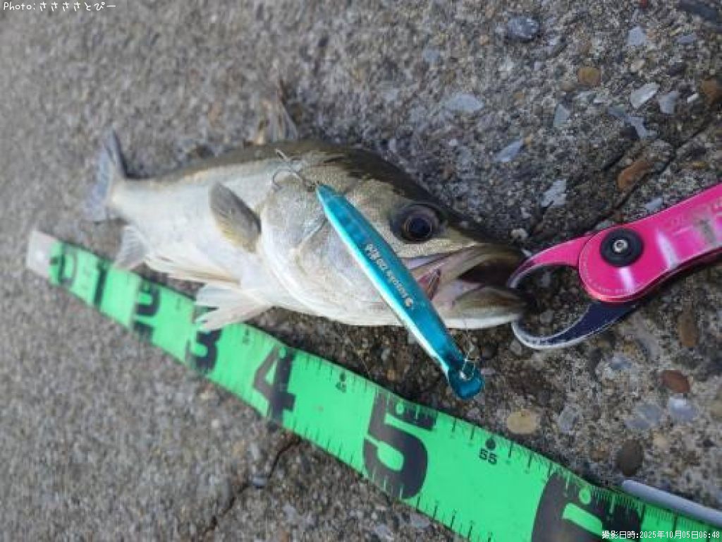 2025年10月5日7時13分に釣れたシーバス&アジ&コノシロ&ギマのポイント千葉県内房(関東地方)ささささとぴーさん釣果詳細情報です。この情報を詳しく見ることで、ルアー、ロッド、タックル(仕掛け)など効率よく自分なりの爆釣を初心者でも狙うことができます。