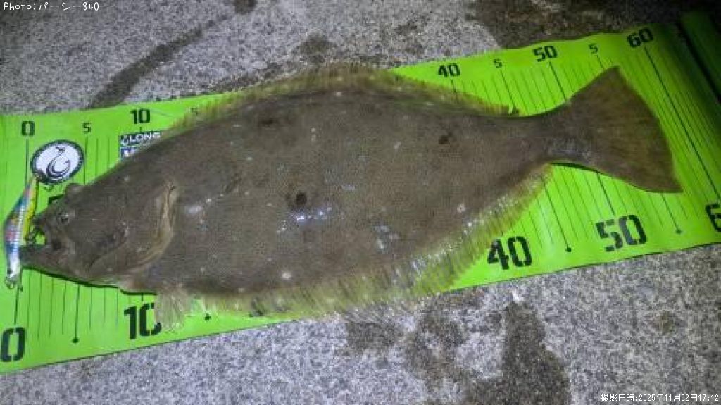 2025年11月2日17時12分に釣れたヒラメのポイント宮城県海(東北地方)パーシー840さん釣果詳細情報です。この情報を詳しく見ることで、ルアー、ロッド、タックル(仕掛け)など効率よく自分なりの爆釣を初心者でも狙うことができます。