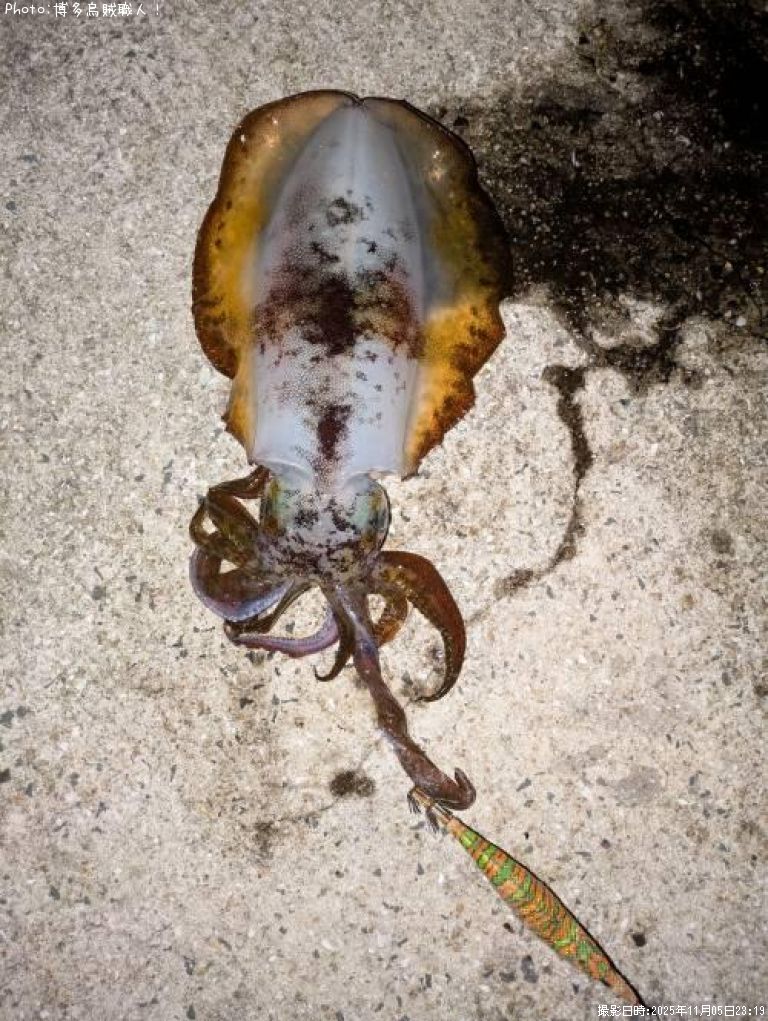 2025年11月5日23時19分に釣れたアオリイカのポイント長崎県平戸市(九州地方)博多烏賊職人!さん釣果詳細情報です。この情報を詳しく見ることで、ルアー、ロッド、タックル(仕掛け)など効率よく自分なりの爆釣を初心者でも狙うことができます。