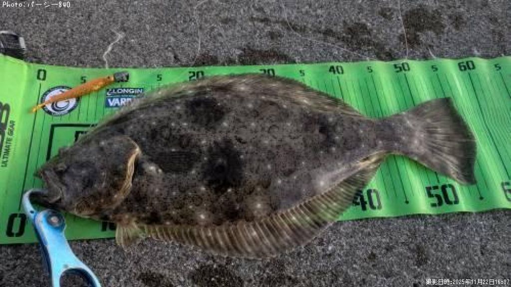 2025年11月22日16時37分に釣れたヒラメのポイント宮城県海(東北地方)パーシー840さん釣果詳細情報です。この情報を詳しく見ることで、ルアー、ロッド、タックル(仕掛け)など効率よく自分なりの爆釣を初心者でも狙うことができます。