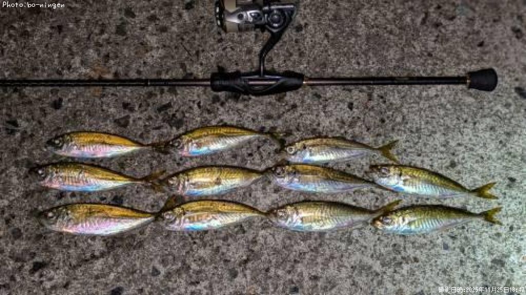 2025年11月25日18時47分に釣れたアジのポイント宮城県防波堤(東北地方)bo-ningenさん釣果詳細情報です。この情報を詳しく見ることで、ルアー、ロッド、タックル(仕掛け)など効率よく自分なりの爆釣を初心者でも狙うことができます。