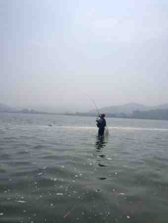 シンさんとダベってて10分後、振り返るとそのアングラーはまだ格闘中。