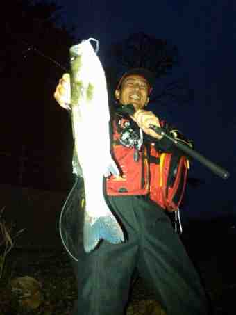 開始早々、ケニアくんがガツンと70cm近いシーバスをGET!