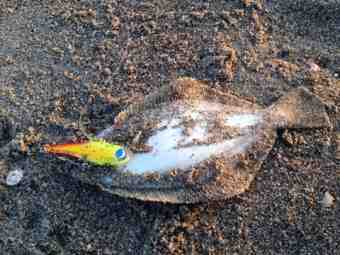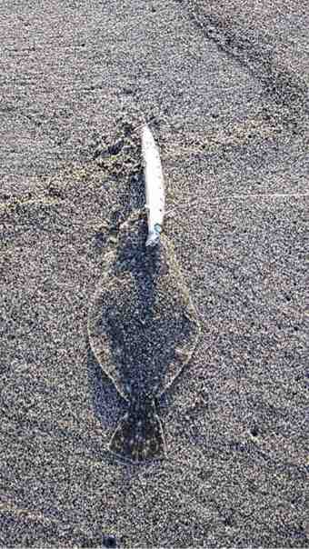 が足元で40アップヒラメがボラに変身し引き波とともにオートリリース…